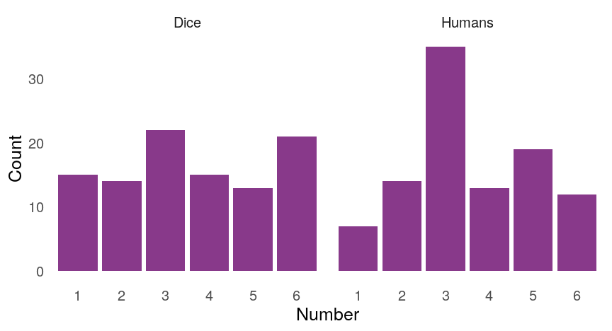 class: center, middle, inverse, title-slide # You can be a data detective ## Florence Nightingale Day ### Rhian Davies ### 2019-01-10 --- <!--Abstract: Humans are bad at dealing with randomness and probabilities - we ignore the obvious and see patterns in the ordinary. It's my job to decide whether differences in the data are due to chance or a real underlying cause. Stories of real projects (personality and deodorant) and discuss the pitfalls that we humans often stuggle with #chakra: libs\remark-latest.min.js --> # Randomly choose a number between 1 and 6... <!-- Everyone, choose a number between 1 and 6. Just choose the first number you thing of. Stick with it. Ok, hands up if you chose the number 3...? How about 6?--> -- <!-- --> --- # Randomly choose a number between 1 and 6... <!-- --> --- # Let's try tossing a coin. -- <!-- Increase size The Gambler’s Fallacy – a trick of the brain that leads us to think that if something hasn’t happened for a long time, it is more likely to happen again. If a coin lands on heads three times, for instance, it instinctively feels like it should land on tails – but there is an equal chance of it landing on heads again --> ## H T T H H T T H H T T T T T H T H H T T T T T T T H T H T H --- class: center, middle <!--You’re listening to music on shuffle, and an artist appears twice in a row. It feels like more than a coincidence – perhaps your music player is playing tricks on you, or has chosen favoured artists – but is it? In fact, music players tend not to shuffle randomly. But that’s because if it did, it would actually feel less random. Human brains will start seeing patterns in even the smallest coincidences – and in a long shuffled playlist, it’s likely that certain songs or artists will come next to one another. “The problem is that to humans, truly random does not feel random,” Mattias Petter Johansson, a Spotify developer, wrote in an internet post earlier this month. “So we got tons of complaints from users about it not being random. “Last year, we updated it with a new algorithm, that is intended to feel more random to a human.” The feeling that playlists are being played with comes partly from the Gambler’s Fallacy – a trick of the brain that leads us to think that if something hasn’t happened for a long time, it is more likely to happen again. If a coin lands on heads three times, for instance, it instinctively feels like it should – but there is an equal chance of it landing on heads again. That means that if a playlist repeats artists, songs or genres then it feels wrong. If shuffle is truly random, the Gambler’s Fallacy leads us to think, then the songs should be more spaced out. But there is an equal chance that songs will come close together as there is that they will be far apart-->  --- # What is a statistician? <!-- Insert google image searches--> -- * My job to decide whether differences in data are due to __random chance__ or a __real underlying cause__. * Play with other people's data * Meet lots of interesting people --- # Reality check: do speed cameras reduce serious road accidents?  --- class:center <!-- Unilever: Global 169,000 employees over - R&D over 6000, 15 people in my group owns over 400 brands, 100 countries Arctic Shores: Scale up, 30 employees across 3 offices (Man, London, Singapore) Many different people - one DS Digital Rail: 2 employees across one office * Unilever want to understand how consumers use deodorant. * Experimental participants are notoriously bad at filling in study diaries. * Unilever developed data loggers to collect user data in a less intrusive and more reliable way. * Can we learn how consumers use deodorant just using the logger data?--> <img src="images/unilever.png" height = "150"> .pull-left[ <center><img src ="images/rexona.png" alt="Roll on deodorant" style="width: 180px;"/></center> ] .pull-right[<center><img src="images/datalogger.jpg" alt="Data Loggers" style="width: 300px;"/></center>] --- class: center <img src="images/as.png" height = "100"> --  --- class: center   --- class: center, inverse, middle <img src="images/hannah_fry.jpg" height = "350"> <img src="images/mona_c.jpg" height = "350"> @ FryRsquared @MonaChalabi @trianglegirl --- class: center, inverse, middle  --- class: center, inverse, middle