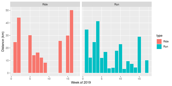 ) ### 2019-05-01 --- layout: true <div class = "rladies-header"> <span class="social"><table><tr><td><img src="images/twitter.gif"/></td><td> @trianglegirl</td></tr></table></span> </div> --- # About me .pull-left[  ] .pull-right[  ] --- background-image: url("https://media.giphy.com/media/eSakWipdNIaas/giphy.gif") background-position: 50% 50% class: center, inverse --- class: middle ```r library("beepr") Sys.sleep(180) beep() ``` --- background-image: url("https://media.giphy.com/media/pMDNVVNOKp3Ta/giphy.gif") background-position: 50% 50% class: center, inverse --- class: middle ```r library("BRRR") Sys.sleep(180) skrrrahh(18) ``` --- background-image: url("images/compiling.png") background-position: 50% 50% background-size: 70% class: center, inverse --- class: middle ```r library("RXKCD") getXKCD(which = "current") ``` --- # Twitter ```r library("rtweet") tweets <- as_tibble(search_tweets(q = "#GameOfThrones")) ``` ``` ## Searching for tweets... ``` ``` ## Finished collecting tweets! ``` .center[] --- background-image: url("https://media.giphy.com/media/o0vwzuFwCGAFO/giphy.gif") background-position: 50% 50% background-size: 50% class: center, inverse --- # Actually doing some work now... ## Reports 📝 ## Packages 📦 ## Shiny apps ✨ ## Handouts 📓 --- # Python 🐍 -- ```r library("reticulate") source_python("python-script.py") python_hello() ``` ``` ## [1] "Hello from Python" ``` -- # SPSS 📉 ```r library("haven") read_sav("nasty-spss-data-file-ugh.sav") ``` -- # PASTA 🍝 ```r library("datapasta") ``` --- background-image: url("images/tribble_paste.gif") background-position: 50% 50% background-size: 100% class: center, inverse --- background-image: url("https://media.giphy.com/media/4dSecMvy8Sdz2/giphy.gif") background-position: 50% 50% background-size: 100% class: center, inverse --- # Strava 🏃 ```r library("rStrava") strava_token <- httr::config(token = strava_oauth(app_name, app_client_id, app_secret)) my_acts <- get_activity_list(strava_token) act_data <- compile_activities(my_acts) ``` ```r total_dist = act_data %>% filter(start_date_local > ymd("2019-01-01")) %>% mutate(week = week(start_date_local)) %>% filter(type == "Run" | type == "Ride") %>% group_by(week, type) %>% summarise(total_dist = sum(distance)) ``` --- # Strava 🏃 ```r total_dist %>% ggplot(aes(x = week, y = total_dist, fill = type)) + geom_col() + xlab ("Week of 2019") + ylab ("Distance (km)") + facet_grid(cols = vars(type)) ``` <!-- --> --- # Leaflet